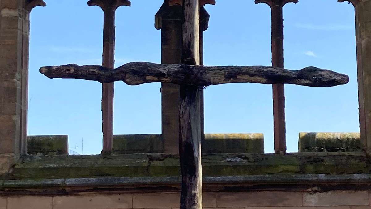 Seit der Wiederherstellung der Gedenkhalle in der Ruine des alten Turm hat dort das Nagelkreuz aus Coventry, geformt aus Nägeln der ausgebrannten Dachkonstruktion, seinen Platz gefunden. Es ist das Symbol der Internationalen Nagelkreuzgemeinschaft geworden und ein beeindruckendes Zeichen für die Herausforderung, die die Arbeit für Versöhnung bis heute bedeutet.
